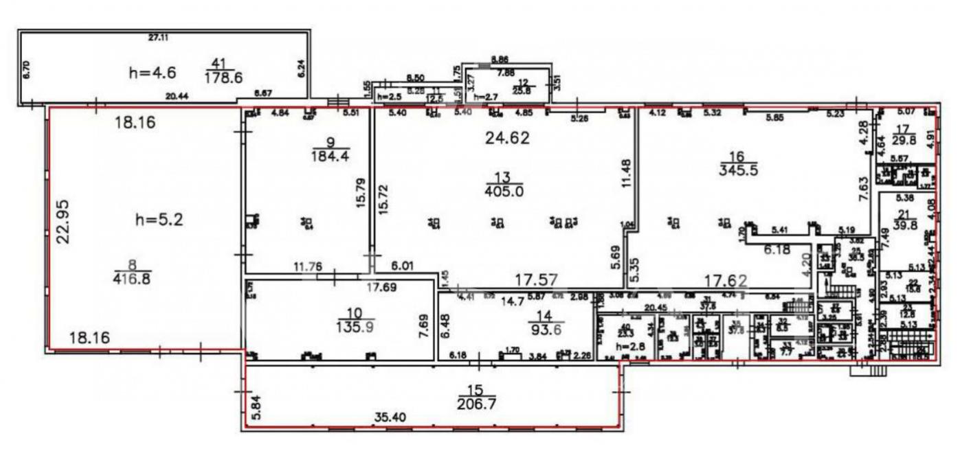 - высота потолков 5.6м.;