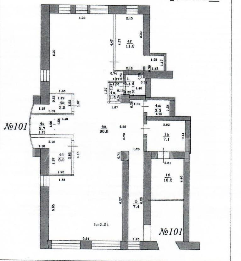 - потолки 3,54 м