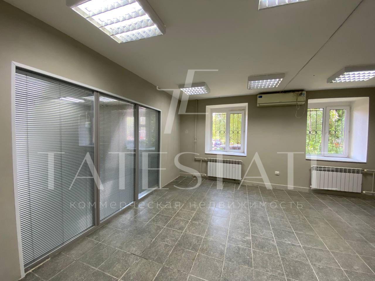 Светлый нейтральный ремонт, можно сделать 3 кабинета ( на данный момент сделан кабинет руководителя со своим сан узлом, кухня для персонала), кондиционер.